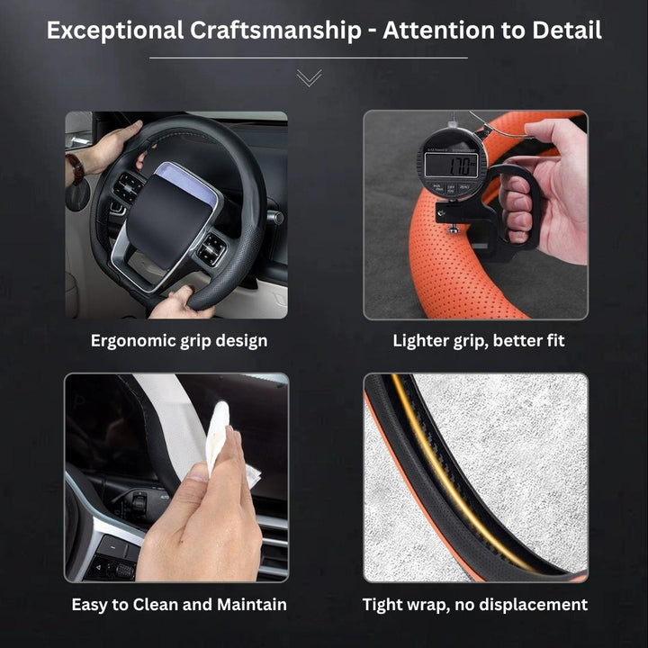 This cover not only enhances your grip and style but also acts as a protective shield for your precious steering wheel. From scorching summer heat to icy winter cold, this cover stands strong with its durable build, preserving your steering wheel and your comfort.