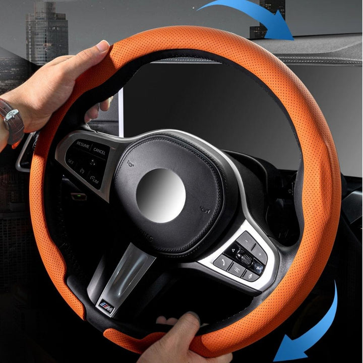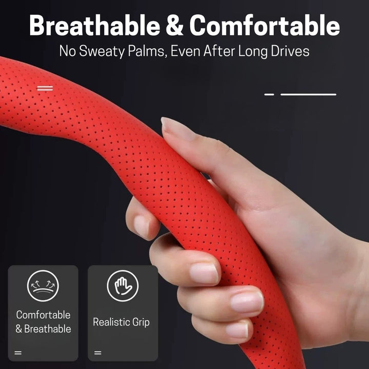 Rev up your car's aesthetics with the Breathable Anti-Slip Leather Car Steering Wheel Cover. Embrace the allure of racing-inspired style that adds a dash of excitement to your daily drives.