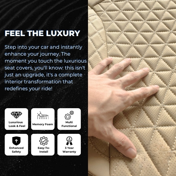 Unlike generic seat covers mass-produced to fit multiple models, CarSilk seat covers are custom-tailored to your exact vehicle specifications. This ensures a flawless fit, superior comfort, and a premium look that seamlessly integrates with your car’s original interior design.