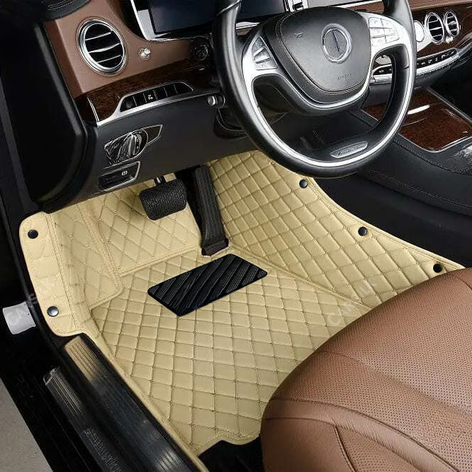 BEIGE DIAMOND PATTERN CAR MATS SET