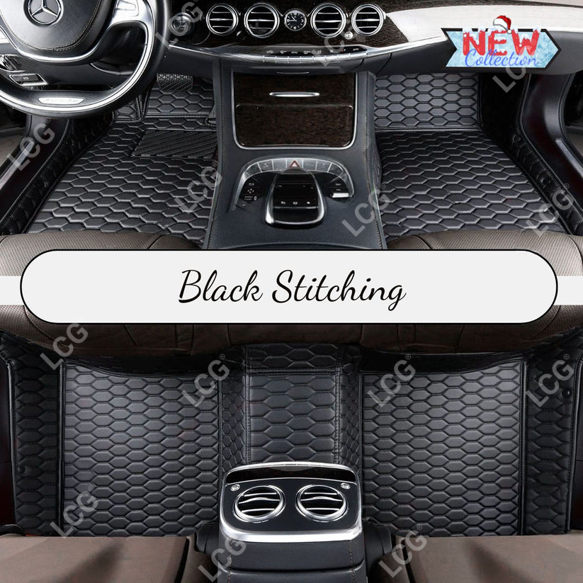 BLACK & BLACK STITCHING HONEY COMB LUXURY CAR MATS SET