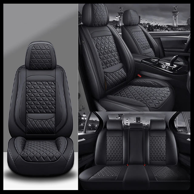Black Breathable Waterproof Diamond Pattern Leather Seat Cover for Cars