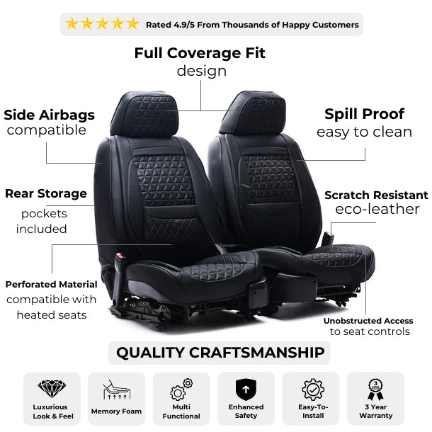 Unlike generic seat covers mass-produced to fit multiple models, CarSilk seat covers are custom-tailored to your exact vehicle specifications. This ensures a flawless fit, superior comfort, and a premium look that seamlessly integrates with your car’s original interior design.