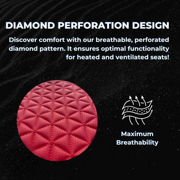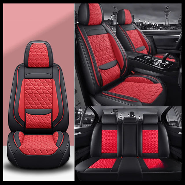 Black & Red Breathable Waterproof Diamond Pattern Leather Seat Cover for Cars