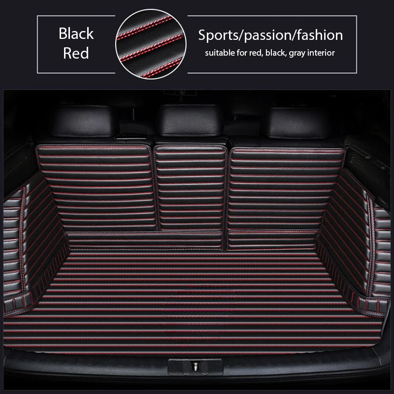 BLACK & RED STITCHING 3D SERIES STRIPE LUXURY TRUNK CAR MATS SET