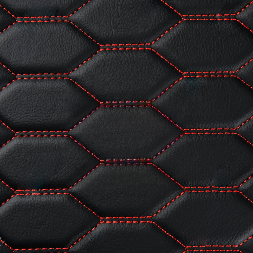 BLACK & RED STITCHING HONEYCOMB LUXURY BASE TRUNK CAR MATS SET