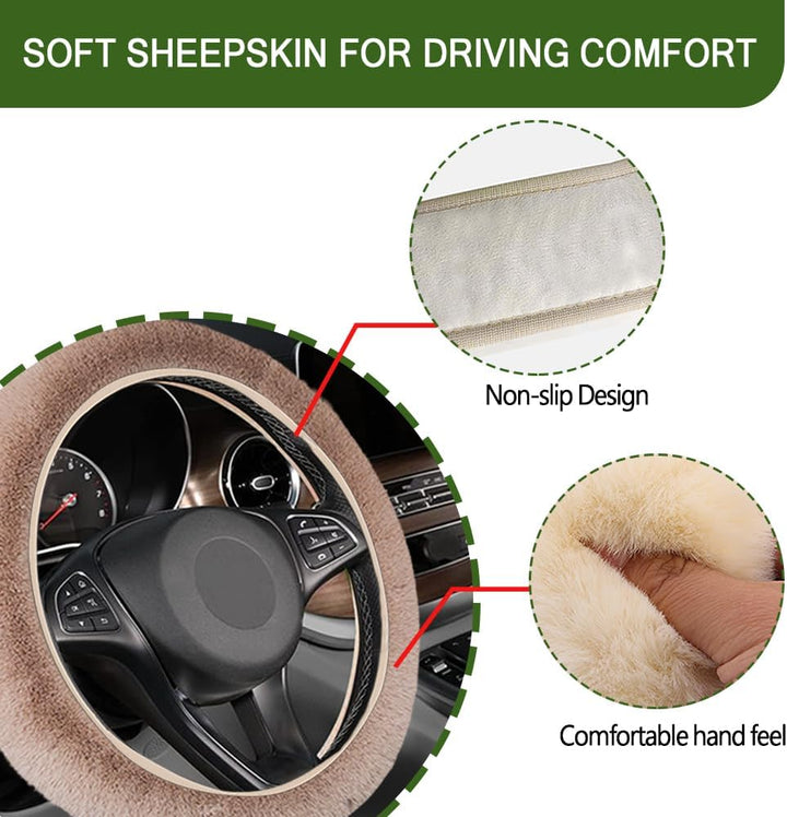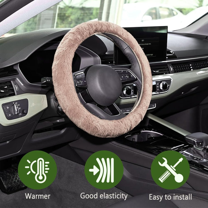 - IMPECCABLE DETAILS: The elastic side of the steering wheel cover matches the plush color, adding to its overall ornamental appeal. With a width of 3.3 inches, this cover ensures a secure grip for your steering wheel, allowing for better control and safer driving.