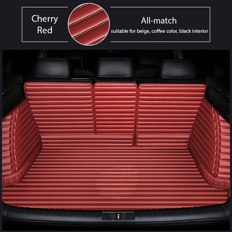 CHERRY RED 3D SERIES STRIPE LUXURY TRUNK CAR MATS SET
