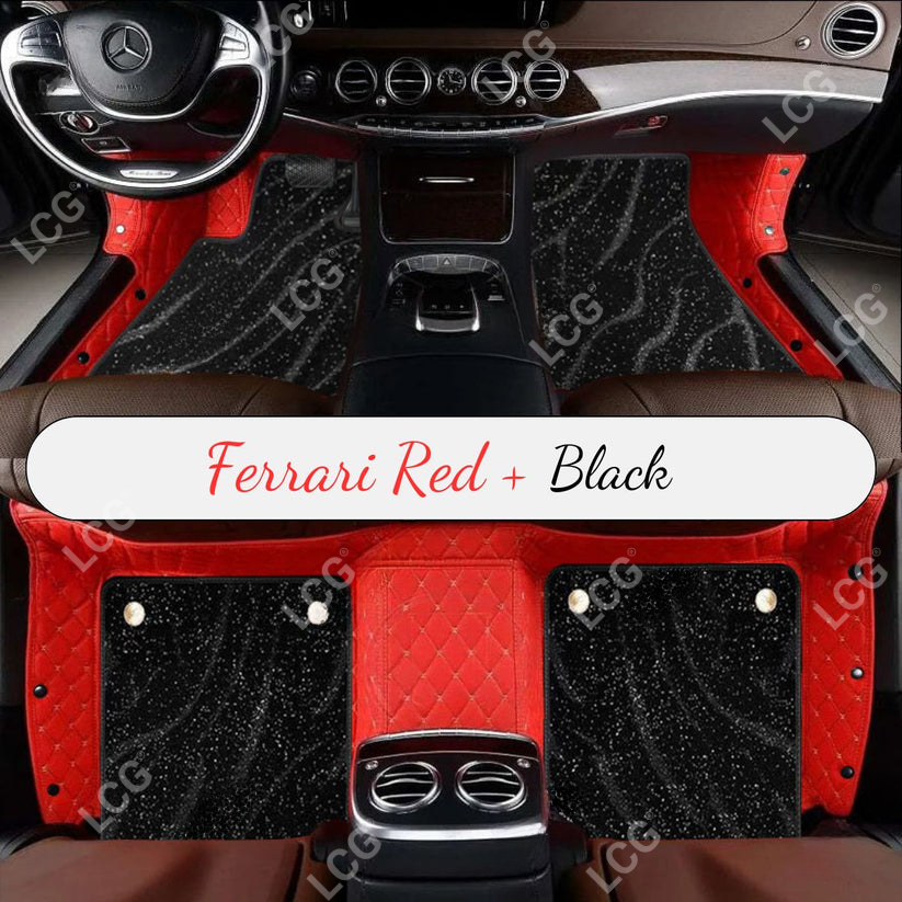 FERRARI RED DIAMOND BASE WITH BLACK TOP CARPET DOUBLE LAYER GALAXY CAR MAT SET
