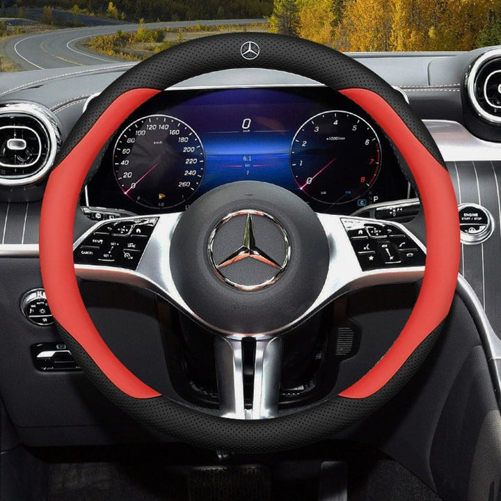 Rev up your car's aesthetics with the Breathable Anti-Slip Leather Car Steering Wheel Cover. Embrace the allure of luxury racing-inspired style that adds a dash of excitement to your daily drives.