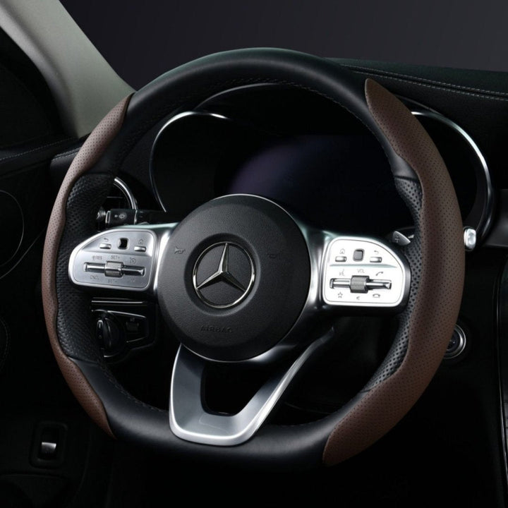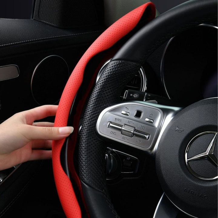 Rev up your car's aesthetics with the Breathable Anti-Slip Leather Car Steering Wheel Cover. Embrace the allure of luxury racing-inspired style that adds a dash of excitement to your daily drives.